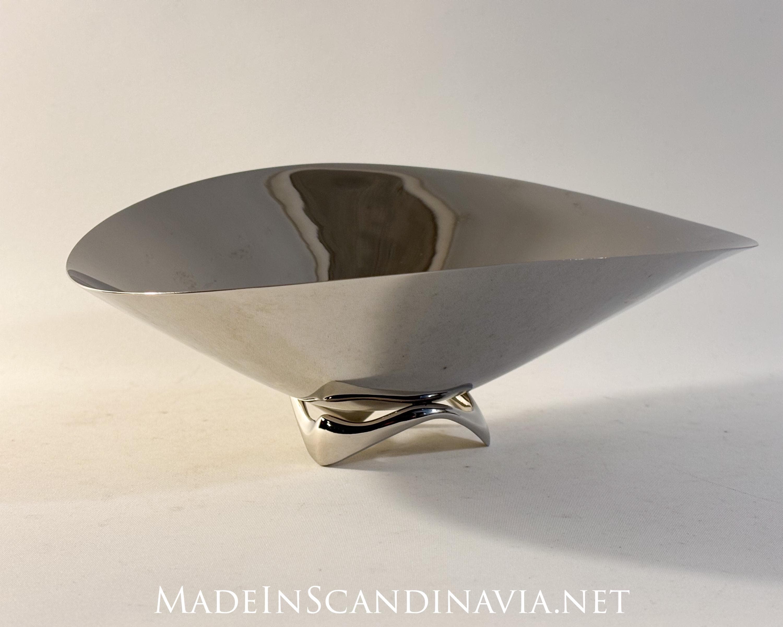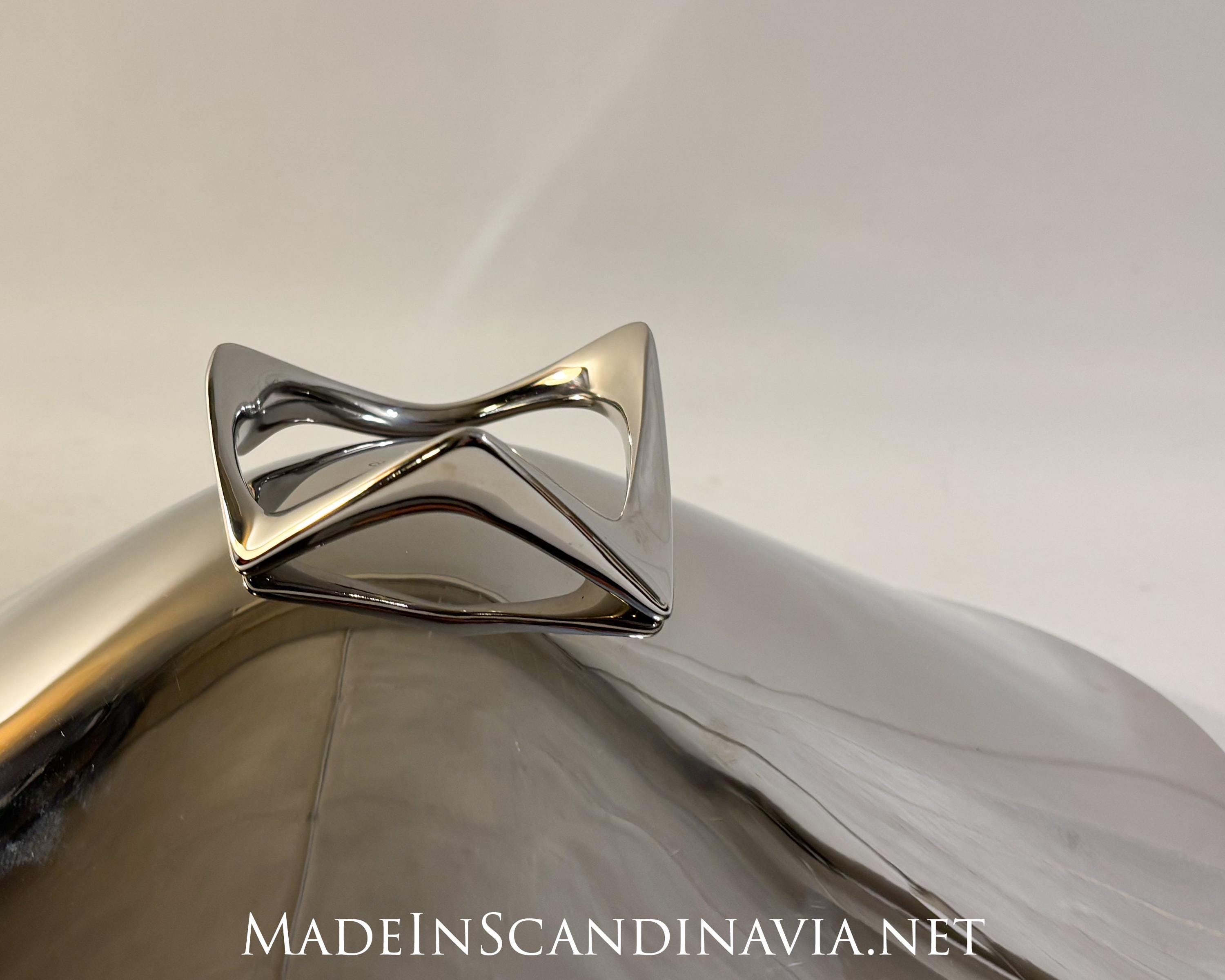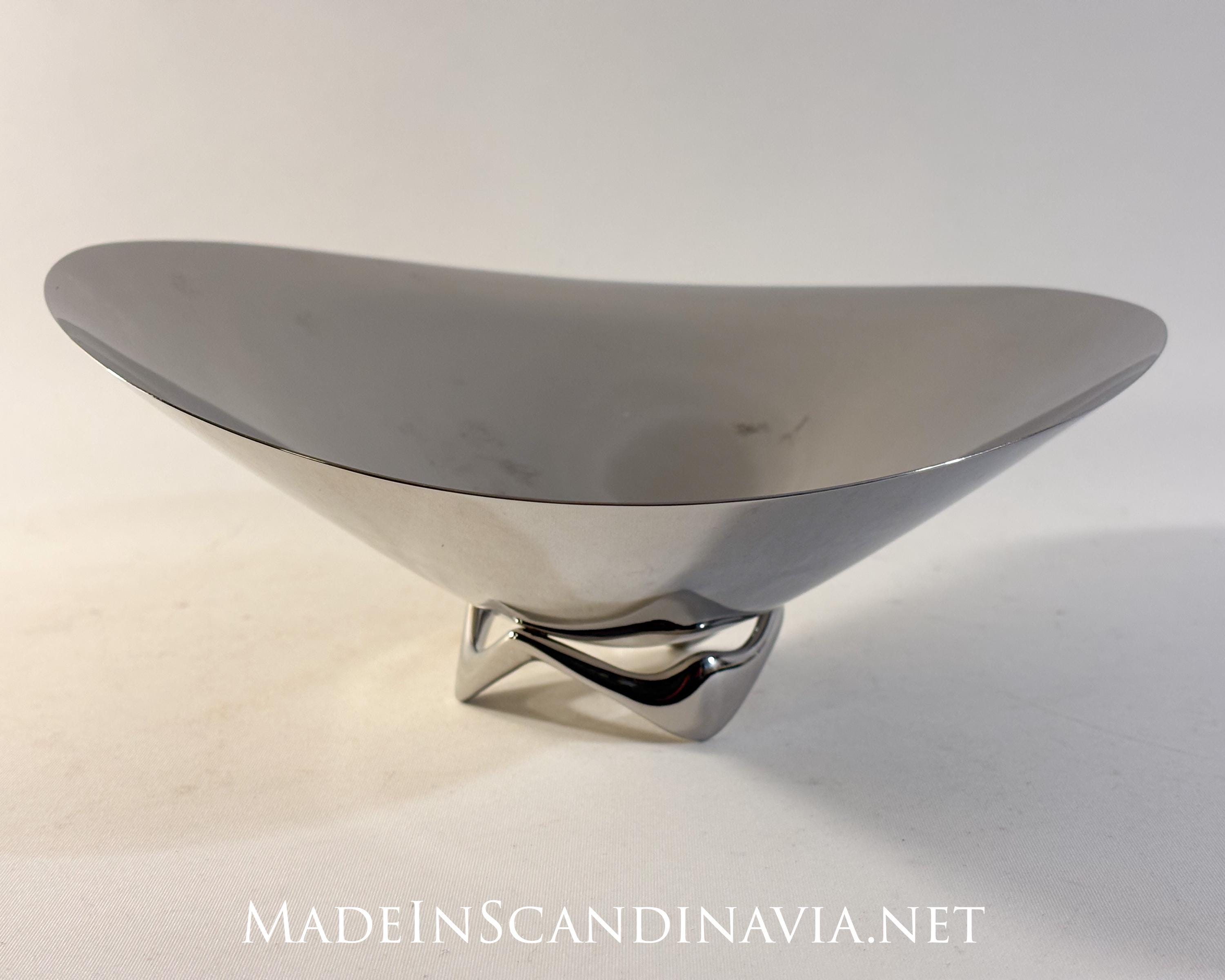 A mirror-polished stainless steel bowl from Georg Jensen of Denmark.