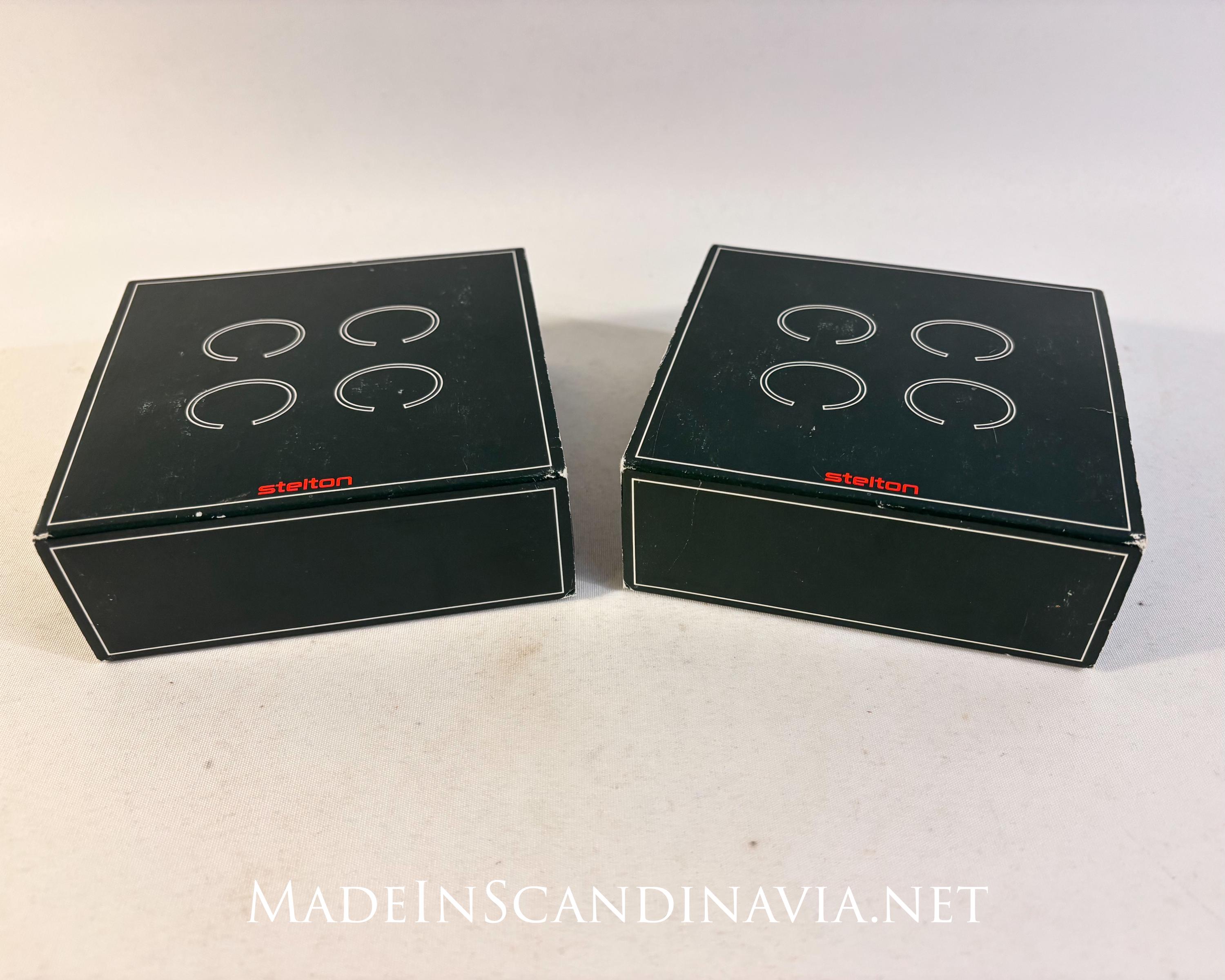 Set of 8 Stelton stainless steel napkin rings still in original box.
